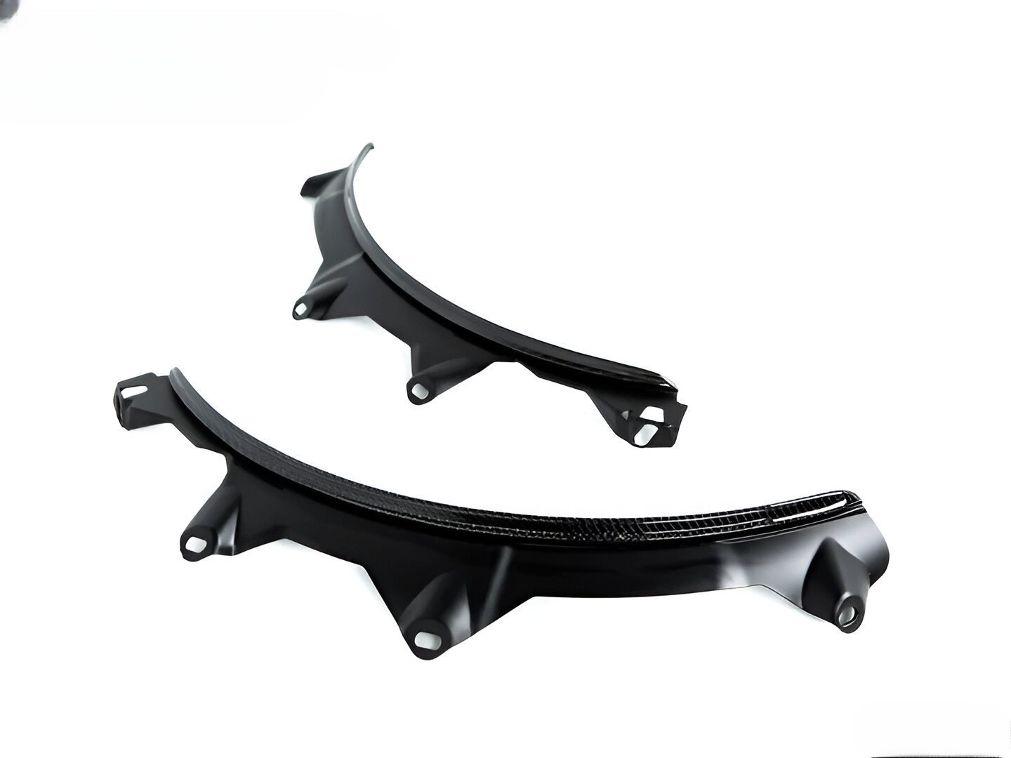 AutoTecknic has developed carbon fiber rear wheel arch extensions for the F90 M5, using the pre-preg dry carbon method to mitigate unsightly damage from small rock chips. These extensions also protect against water puddles and newly paved tar. Additionally, the extensions enhance the vehicle’s appearance, giving it a more trendy look. The installation of these AutoTecknic carbon fiber rear wheel arch extension sets is simple, utilizing the original mounting locations. Crafted by master craftsmen in a 3K twill weave carbon fiber, they ensure perfect aesthetic and fitment. Dry carbon, the highest-quality version of carbon fiber products, is manufactured in a process that includes placing the pre-preg carbon materials into a mold and then curing them in a sealed vacuum (autoclave). This method reduces pinholes and air pockets, minimizes waste, and results in a lighter product compared to the “wet” method. For those adding 20″ or larger wheels, AutoTecknic recommends these trim pieces to prevent spray from the wider rear tires. Suitable for any F90 M5, these extensions not only add a sporty look but also offer slight improvements in stone protection for the rear bumper. Installation can be completed in less than 20 minutes for both sides, with a package that includes a pair of dry carbon fiber splash guards, with rivets being optional for the F90 M5 and F90 M5 Competition.