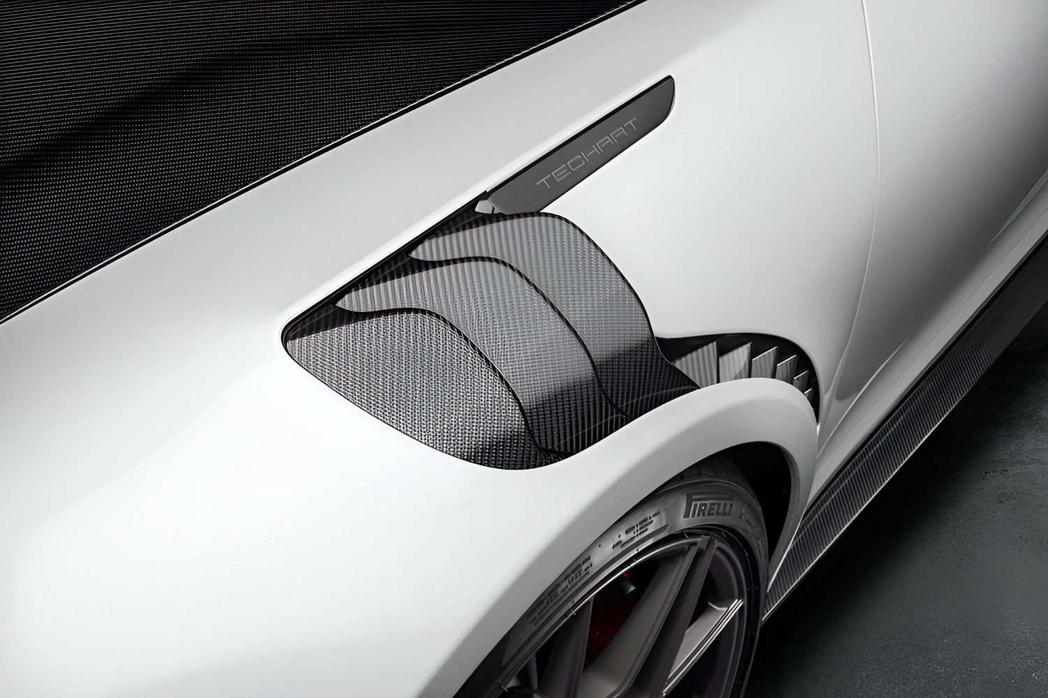 - Features wheel arch louvers, can be finished in gloss or matte carbon, as well as glossy forged carbon fiber