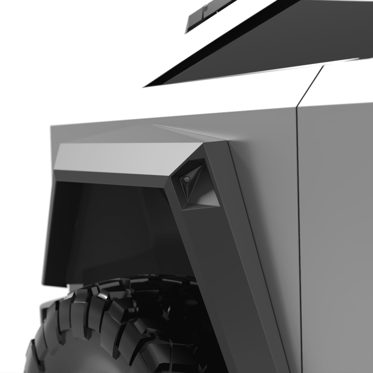 The camera system remains fully functional. The UP INVINCIBLE® Fender Flares retain unobstructed Cybertruck cameras in their original positions ensuring maximum visibility and full functionality of the inevitable full-self driving (FSD).