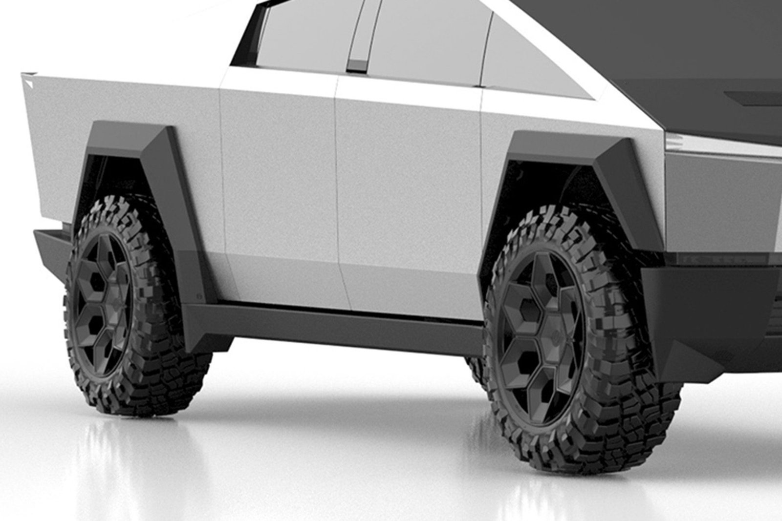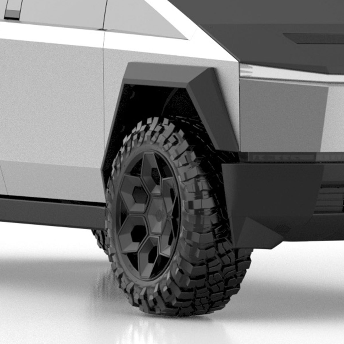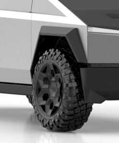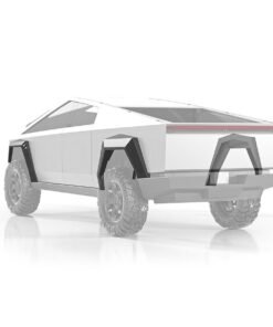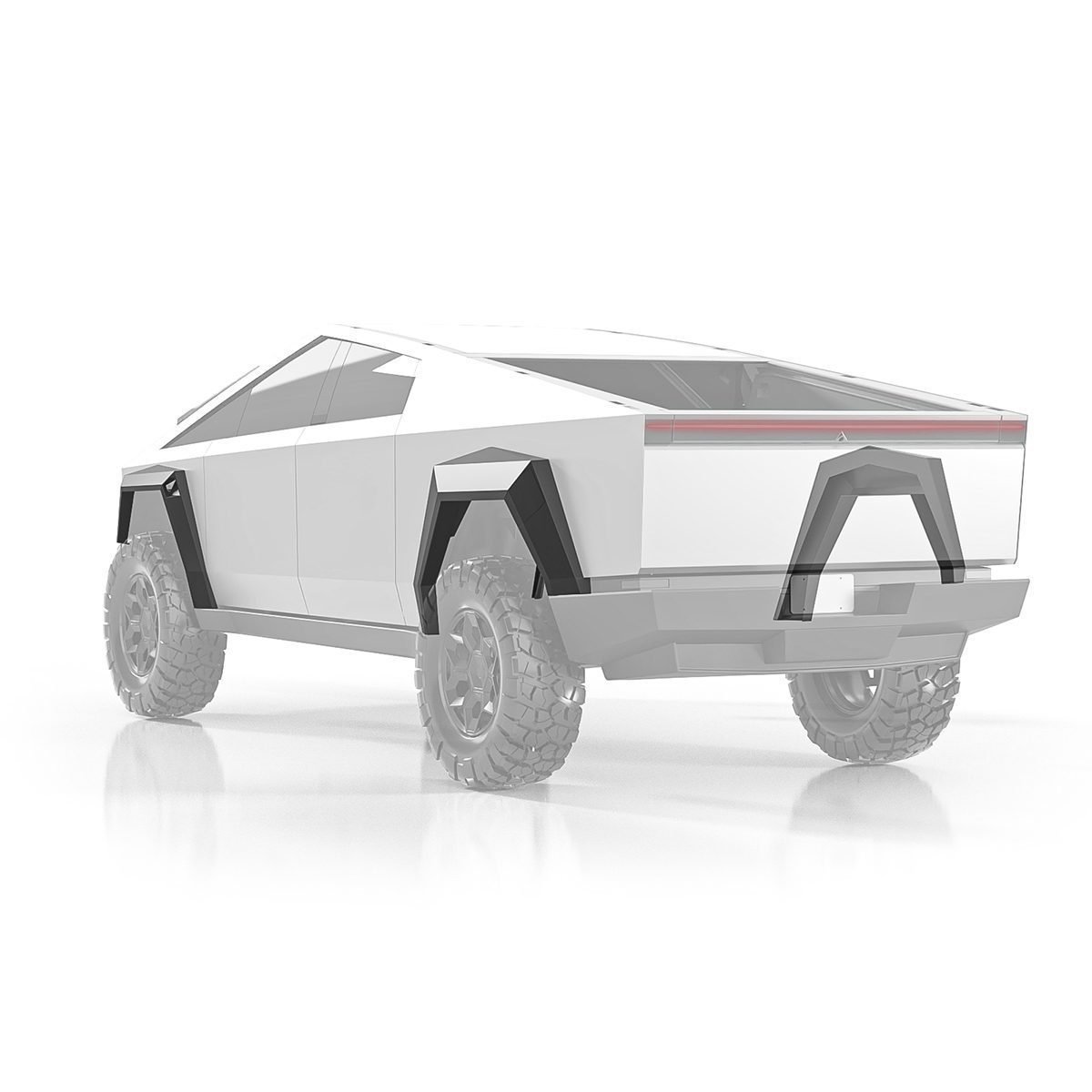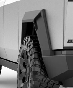 Increase width by 60mm. Each fender flare extends the Cybertruck’s width 20mm at the front, and 30mm at the rear beyond the factory fender for a total maximum width increase of 60mm. This equates to 2.3” of increased width allowing for wider, oversized, and more aggressive wheels or application of wheel spacers.