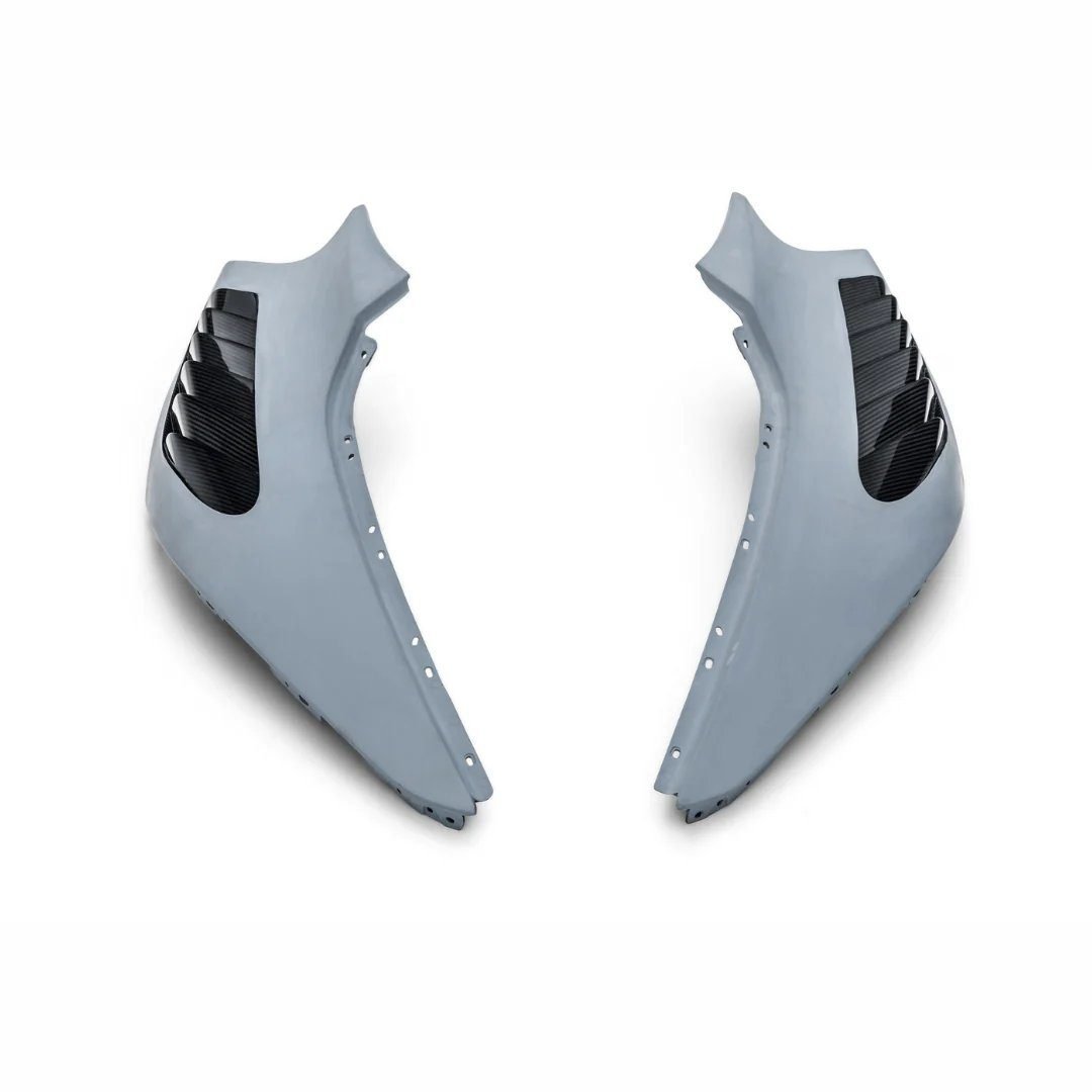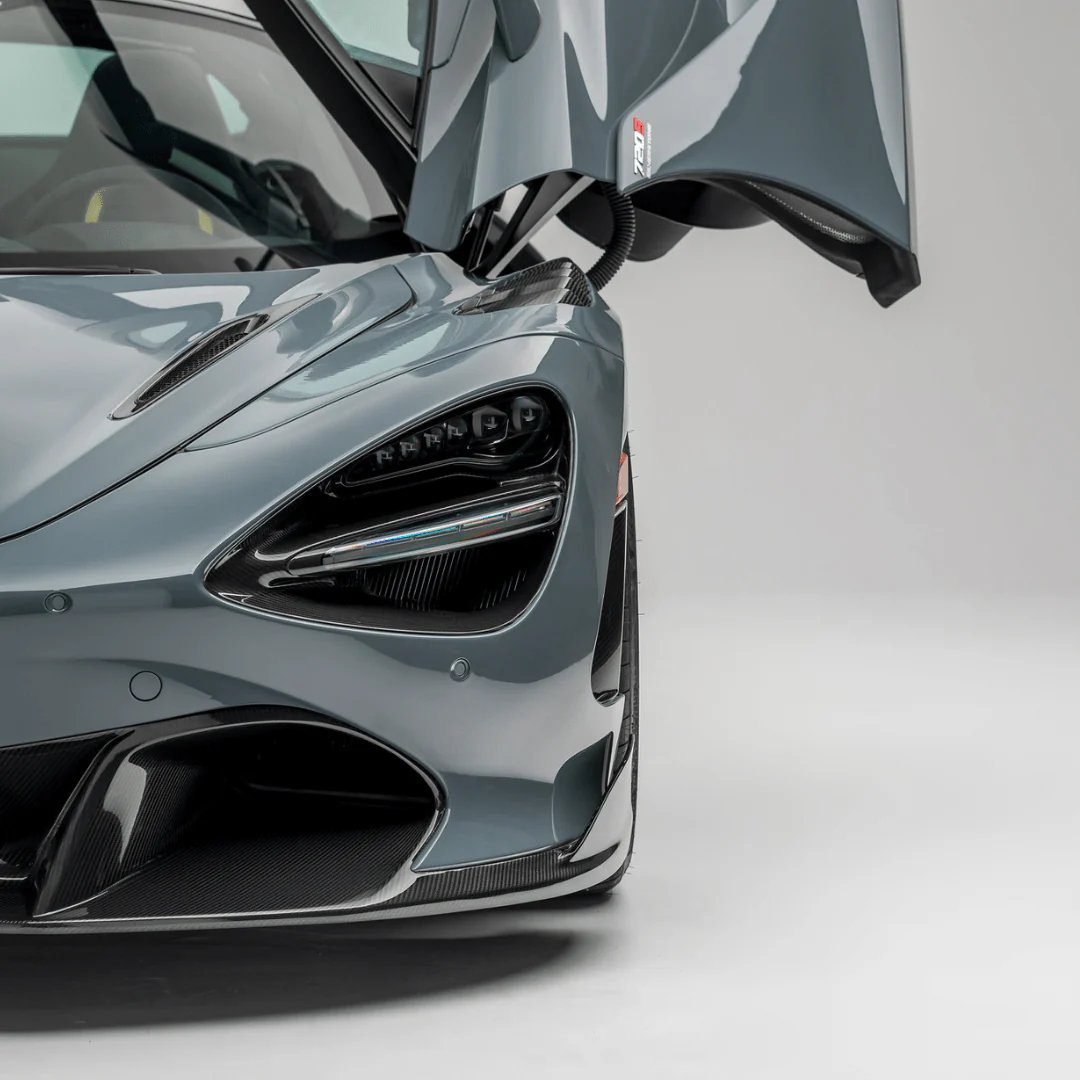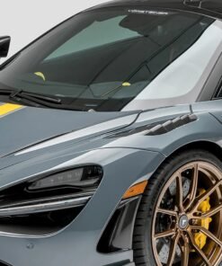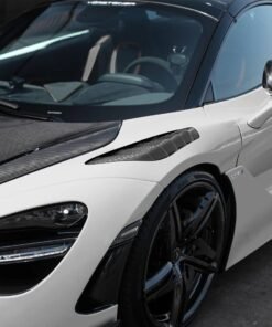 The Vorsteiner Silverstone Edition Front Fenders with Carbon Integrated Vents for the McLaren 720S (Coupe and Spider) combine striking design with functional performance. Crafted from lightweight, high-strength carbon fiber, these fenders feature integrated vents that enhance airflow management by relieving pressure within the wheel wells and aiding in brake cooling. The sculpted profile not only accentuates the aggressive stance of the 720S but also contributes to improved aerodynamic efficiency. Designed for precise fitment on both coupe and spider models, this upgrade seamlessly integrates with the factory body lines while delivering a refined motorsport-inspired appearance.